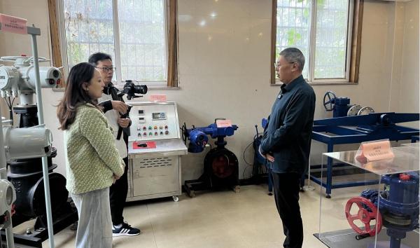 随后胡工带领记者们重点参观公司展厅,并接受了记者的现场采访。胡工详细介绍了公司深耕阀门智能控制领域三十余年所取得的成就与荣誉;胡工提到,近期公司以多年来从事执行机构行业成熟的工作经验,结合国内市场的需求,引进、消化、吸收国外各种先进的电动执行机构的设计和制造技术,并根据同类产品在实际应用中的情况,开展了大量针对性的改进;新产品正在研发中,研发成功后将突破同质化竞争壁垒,大大节约了成本,既能以性价比抢占市场,也可留存利润投入后续研发,形成“成本优化-技术迭代”良性循环。